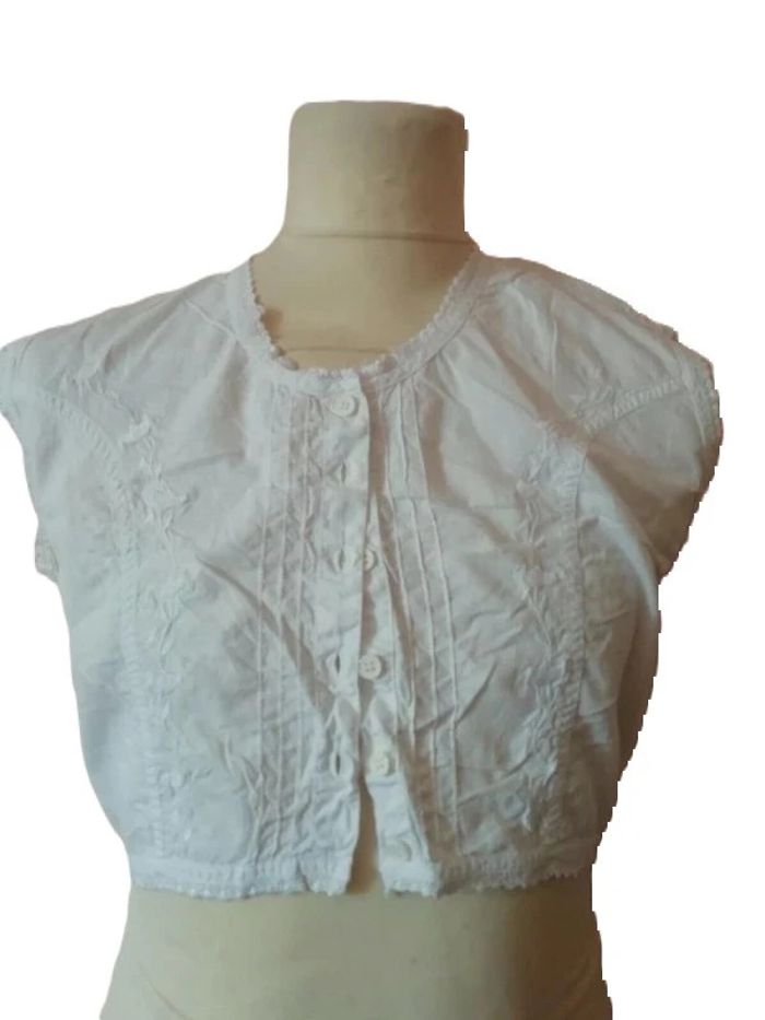 👩🏻{hashtag1} Haut blanc court broderietaille 38? sans manches. WOGLINE???? je comprends pas toutes les lettres.... blanc broderie..TAILLE S SANS MANCHES/blanc. Ouverture boutons. <<<<Regardez bien les mensurations? Je ne connais pas la taille..Merci.>>>>>>>>>. Longueur Totale :38 cm. D'1 Aisselle à l'Autre: 51 cm. Coton.