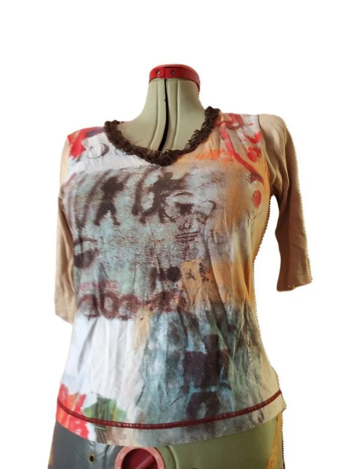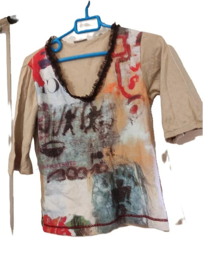 Tee shirt multicouleurs beige imprimé Taille 2 Tonway manche 3/4 - photo numéro 1