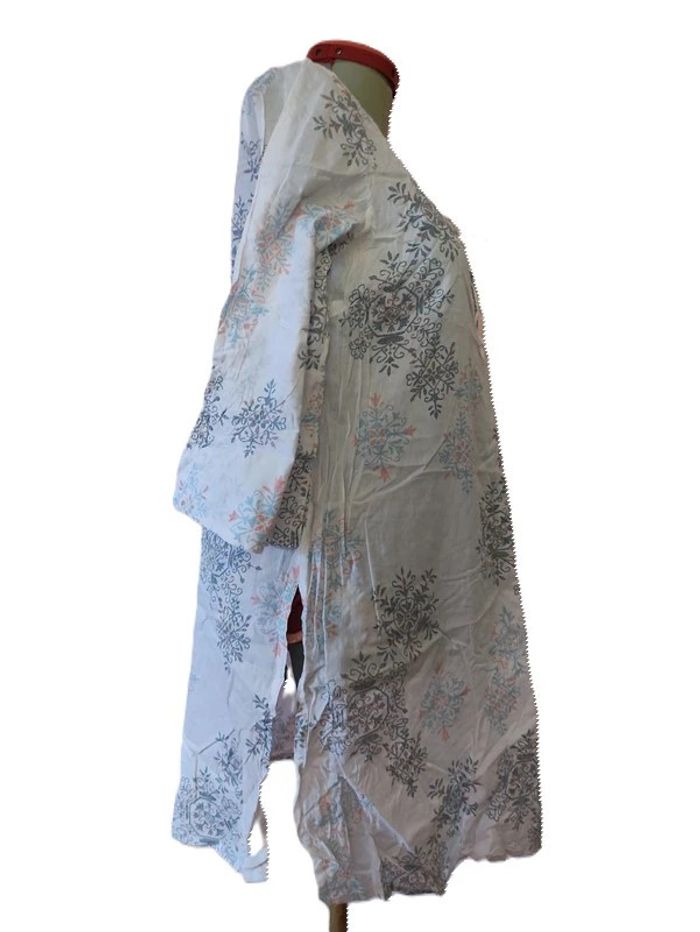 Robe Tunique longue blanche imprimée. H&M.taille M. Longueur totale :91 cm. D'une aisselle à l'autre :51 cm. Longueur manche :46 cm. Fendue par côté sur 35 cm. Coton/lavage 40°.