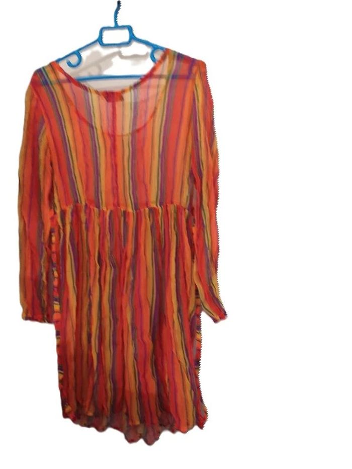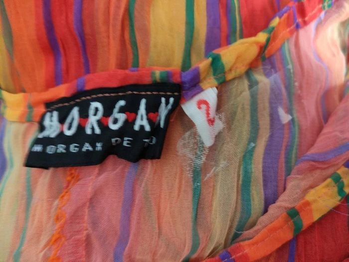 Robe légère transparente Morgan. Taille 2. Multicouleurs. Longueur totale : 90 cm D'1 Aisselle à l'autre : 52 cm. Longueur manches 3/4. Polyester.