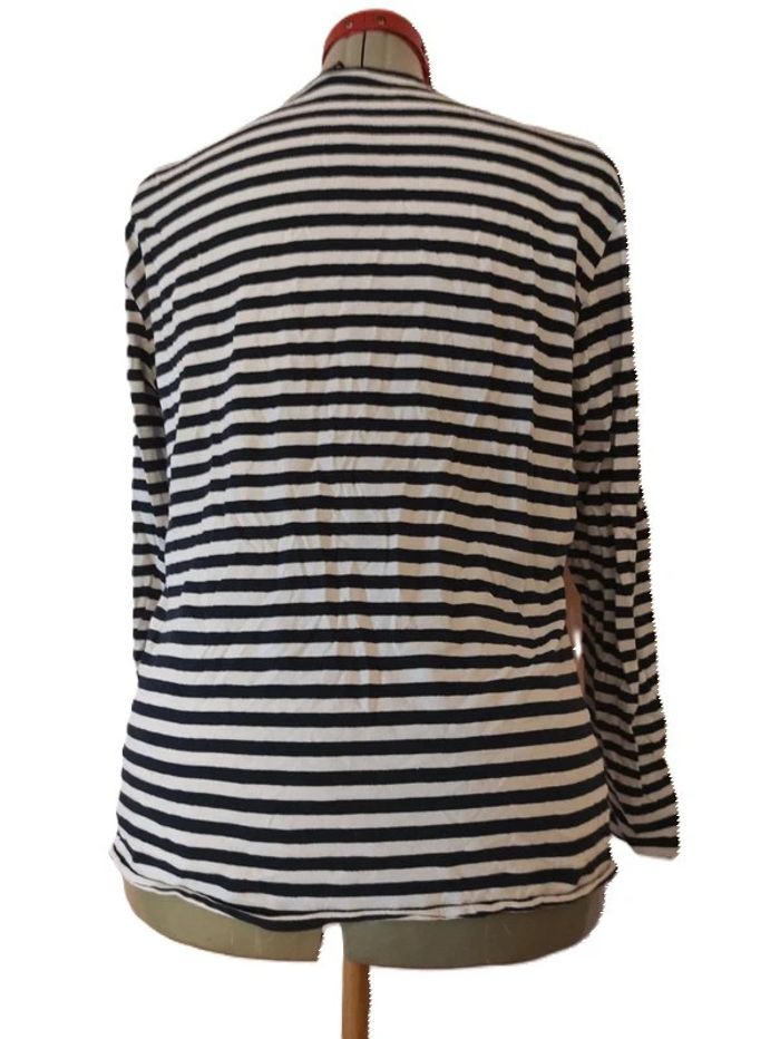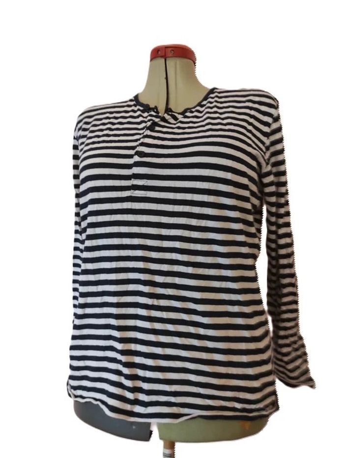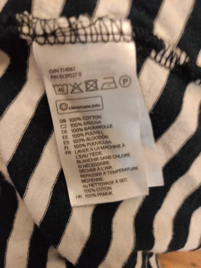 👩🏻#verseau59_tailleLTeeshirtmanche Tee shirt H&M marine blanc rayé. Taille L. Longueur totale : 64 cm. D'une aisselle à l'autre : 60 cm. Longueur manche : 56 cm. Coton. Lavage 40°.