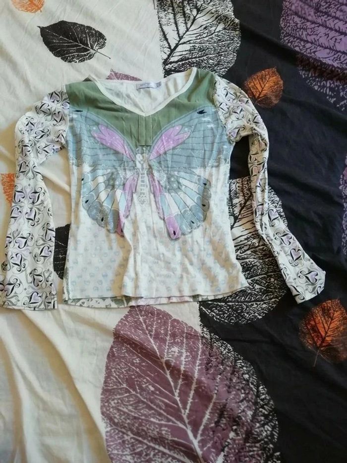 Tee shirt Bohème Zara manches longues Taille L  crème multicouleurs