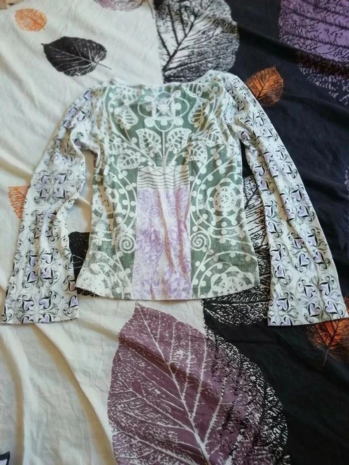 Tee shirt Bohème Zara manches longues Taille L  crème multicouleurs - photo numéro 2