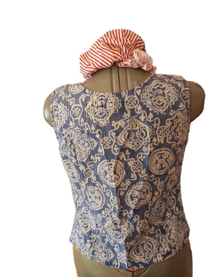 Chemise Bohème Cotton Too Taille 34 Bleu blanc imprimée 👩🏻#verseau59_taille34Top Top Bohème.COTTON TOO. TAILLE XS. LONGUEUR : 52 cm. D'1 Aisselle à l'Autre : 44cm. Fermeture boutons .Lavage 40°.