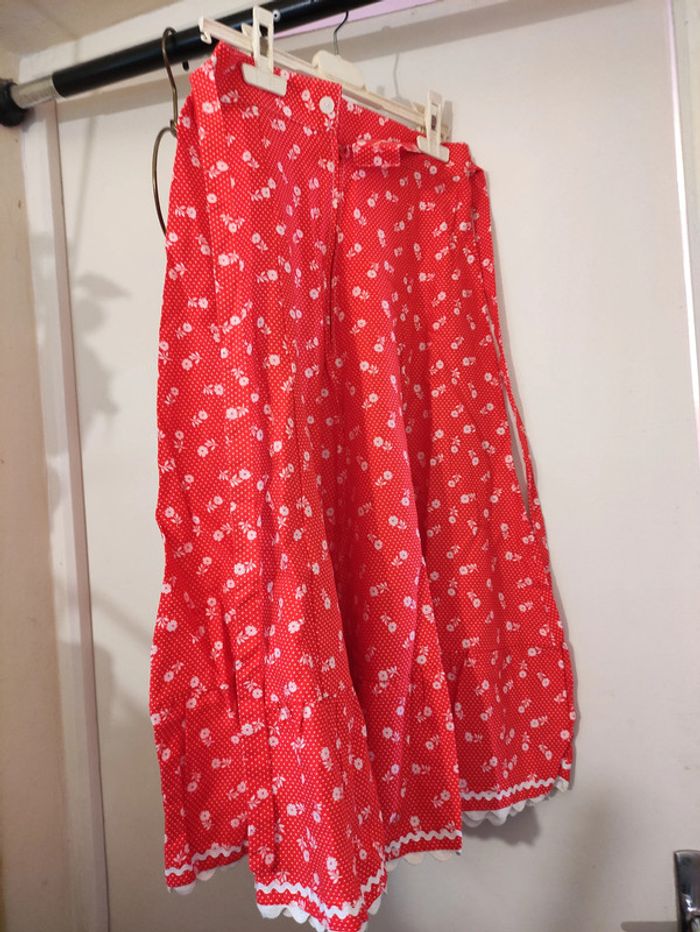 <<<<<Regardez bien les mensurations, Taille petit 34/36.>>>> Jupe rouge imprimée fleurie. Taille 38. rouge blanc. Longueur totale : 73 cm. tour de taille : 67 cm. 2 poches sur le devant. 1 fermeture éclair au dos. coton . lavage 60°.