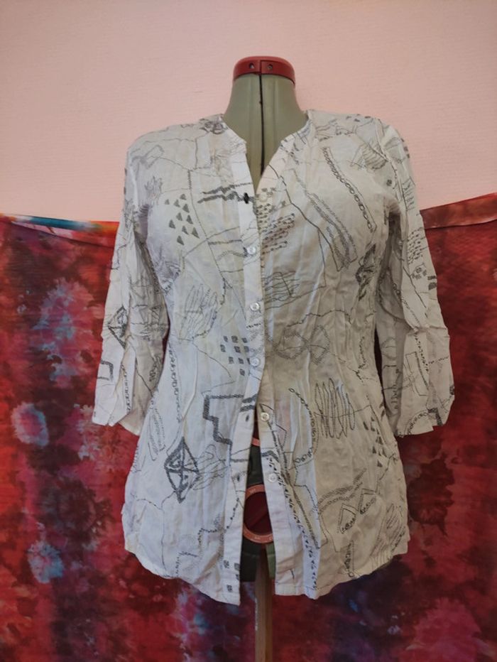 Chemise Kampo blanc imprimée noir taille M - photo numéro 1