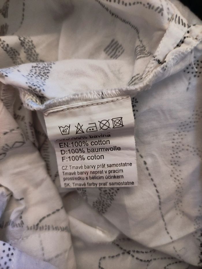 👩🏻#verseau59_tailleMChemise Chemise Kampo blanc imprimée Taille M. Longueur totale : 68 cm. D'une aisselle à l'autre : 56 cm. Longueur manche 3/4 : 44 cm. (Tâches en haut à gauche voir photo). Coton. Lavage 40°.