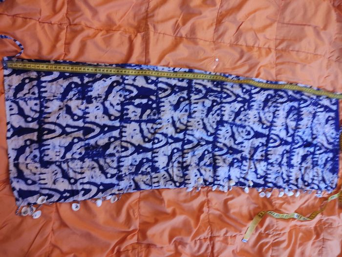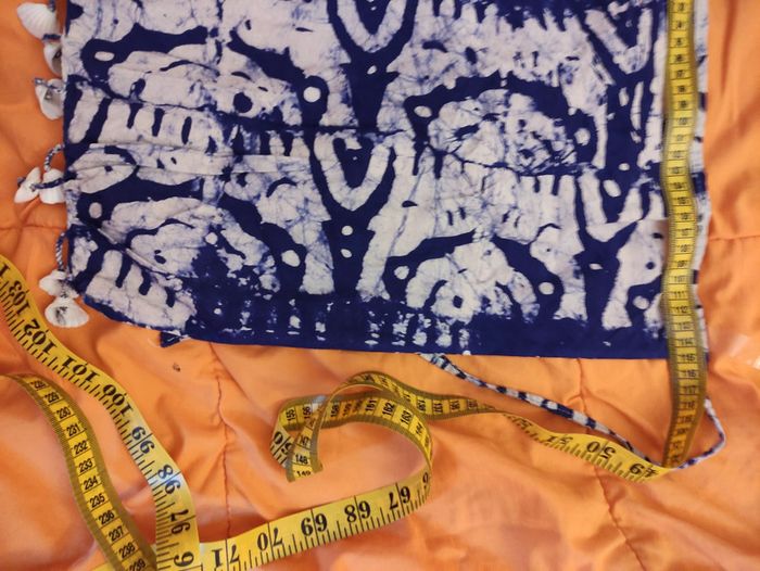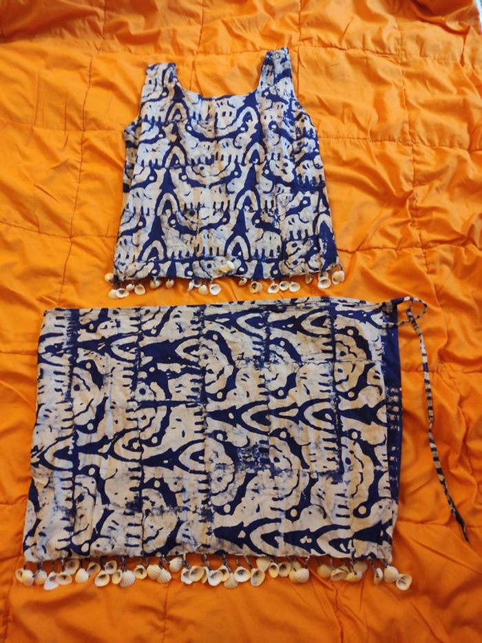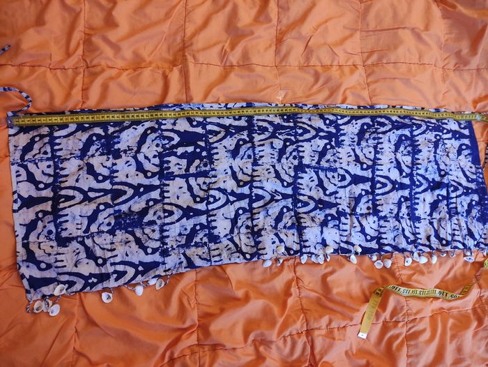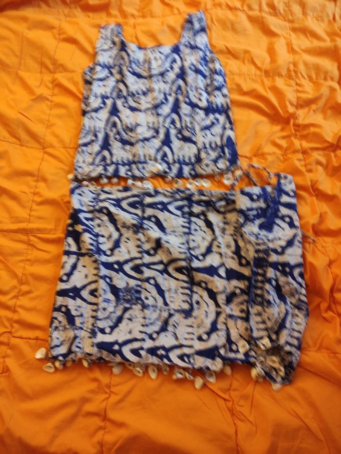 Ensemble plage . Débardeur & Paréo. Débardeur Longueur coquillages compris : 55 cm . D'une aisselle à l'autre : 42 cm. Paréo Longueur coquillages compris : 42 cm. Tour de taille totale du Paréo, liens à nouer : 114 cm. (photo).