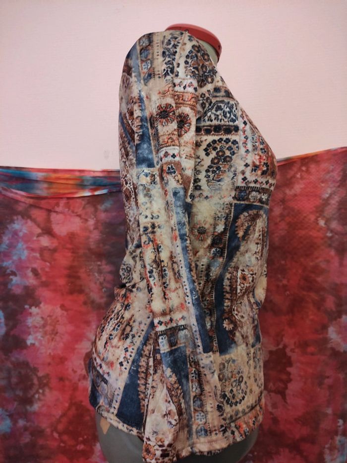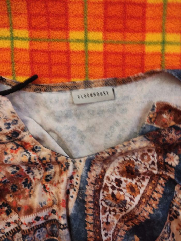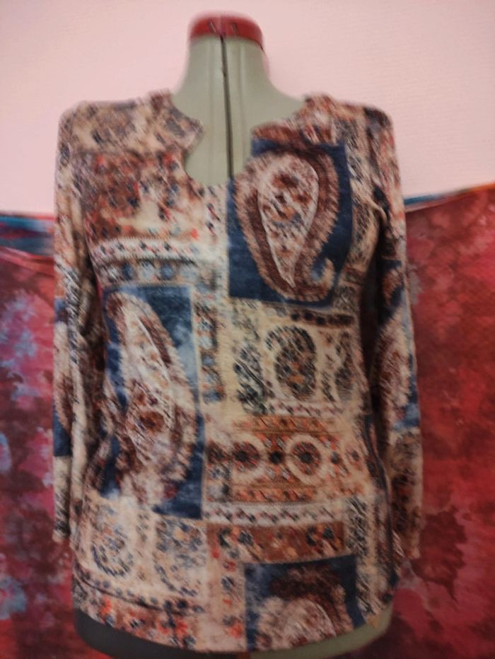 👩🏻#verseau59_taille40Tunique Tee Shirt Bohème. Taille 40. Clockhouse. C&A. Longueur totale : 66 cm. D'Une Aisselle à l'autre : 50 cm. Longueur manche : 58 cm. Polyester. lavage 40°. Tissu doux velours.