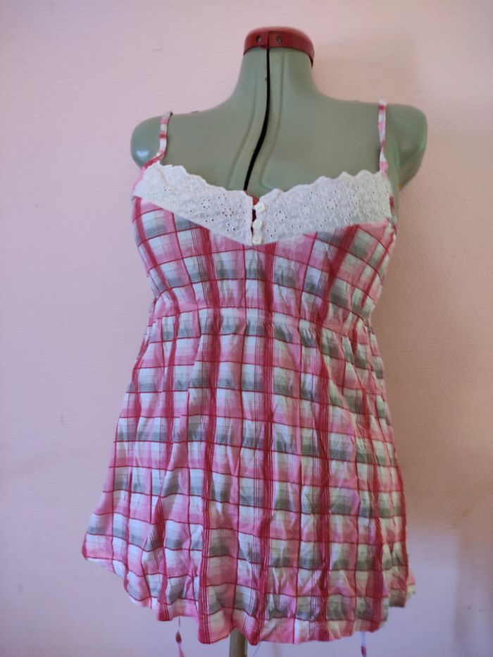 Top à bretelles H&M à carreaux rose gris blanc Taille M