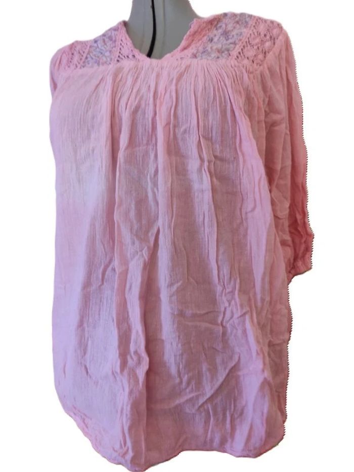 Tunique Bohème Blouse bouffante ample rose manche 3/4 Taille 44