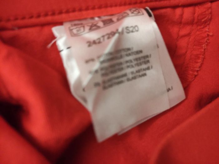 👩🏻#verseau59_taille40Pantacourt Pantacourt rouge extensible . Taille 40. Longueur totale : 81 cm. Tour de taille : 78 cm. étiré : 88 cm.. Entrejambe : 52 cm. 67 % Coton / 30% Polyester/3 % Elasthanne. Lavage 30°.