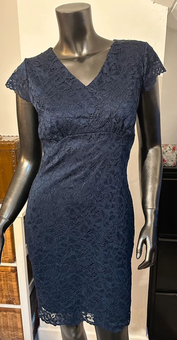 Taille 36 Couleur bleue marine Fermeture par zip dans le dos Longueur de la robe: 85cm