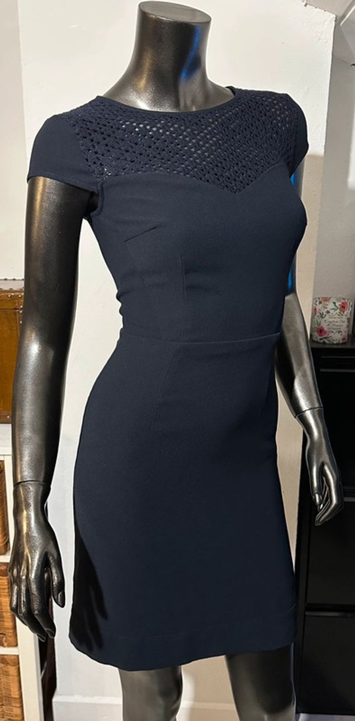 Taille 34 Couleur bleue marine Fermeture par zip sur le côté Longueur de la robe: 80cm