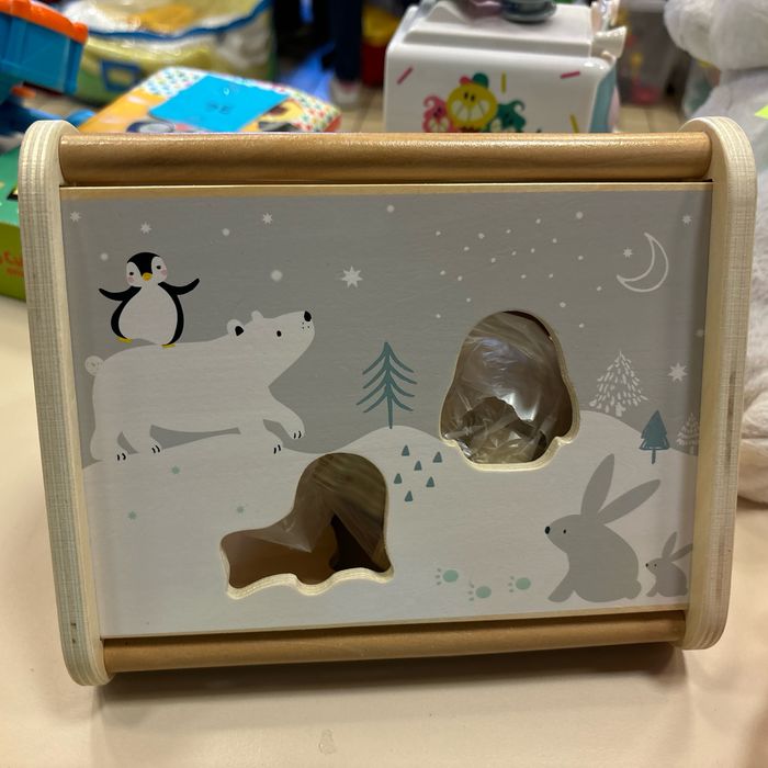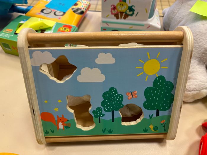 Jouet en bois pour enfiler des formes très jolie en très bon état