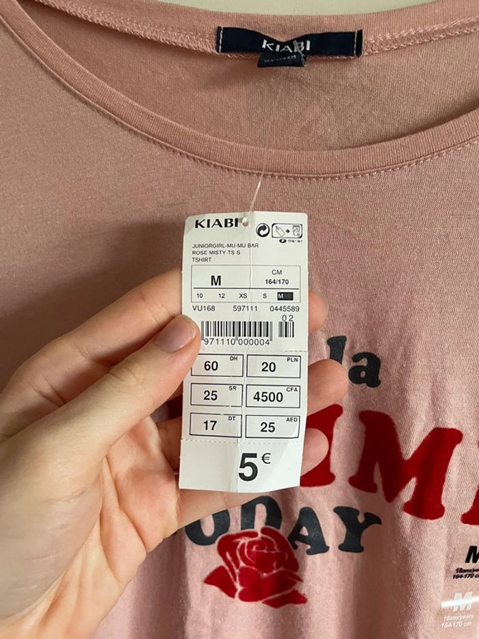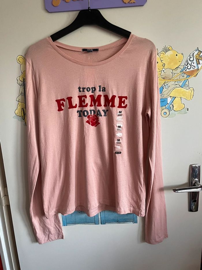 🌸 Tee shirt à manches longues rose à motifs 🌸 Taille M 🌸 Marque Kiabi 🌸 Neuf avec étiquette