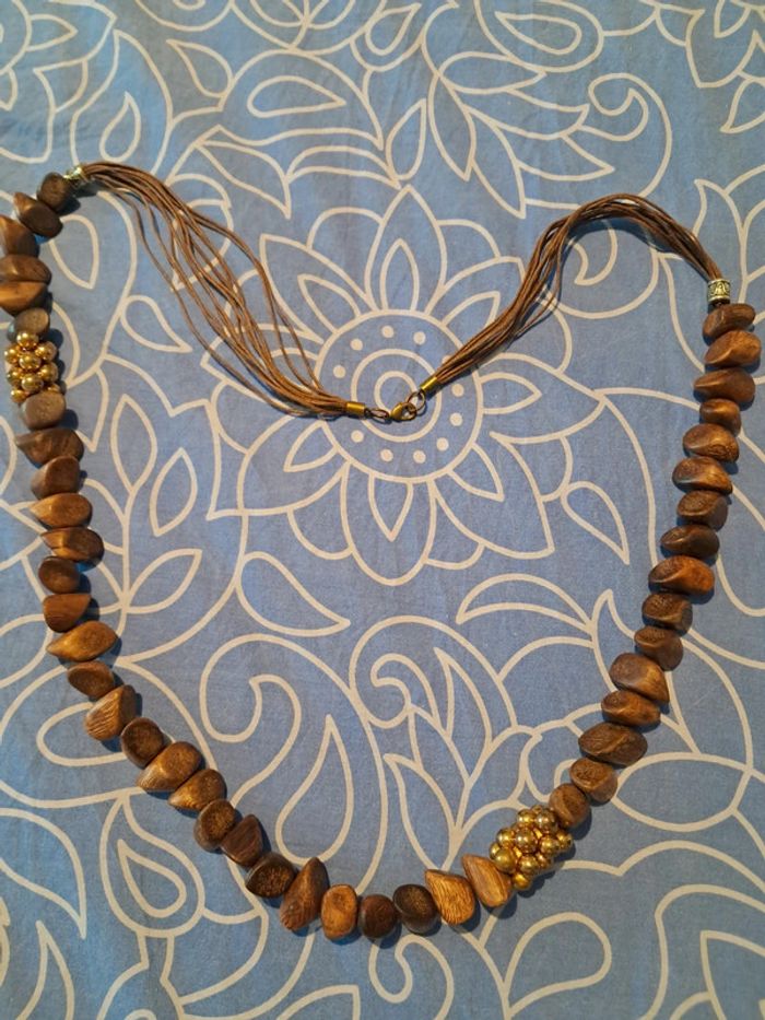Collier, long ( on peut faire deux tours), avec fermoir. Très bon état.