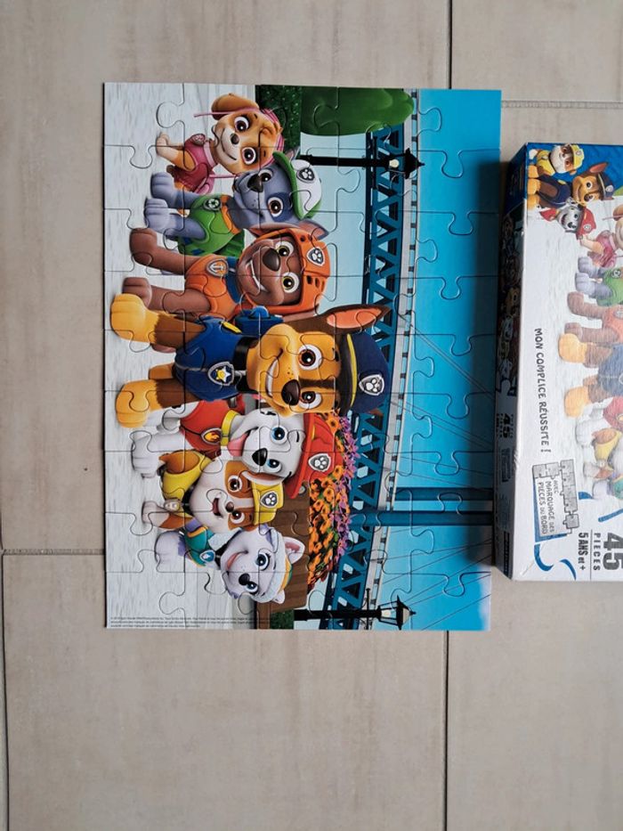 Puzzle pat'patrouille, 45 pièces, complet et en très bon état. A partir de 5 ans.