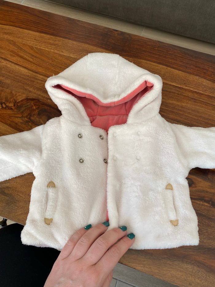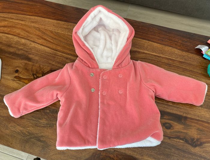 Manteau réversible (extérieur blanc ou extérieur rose) de la marque obaibi en taille 1 mois Très bon état, peu porté