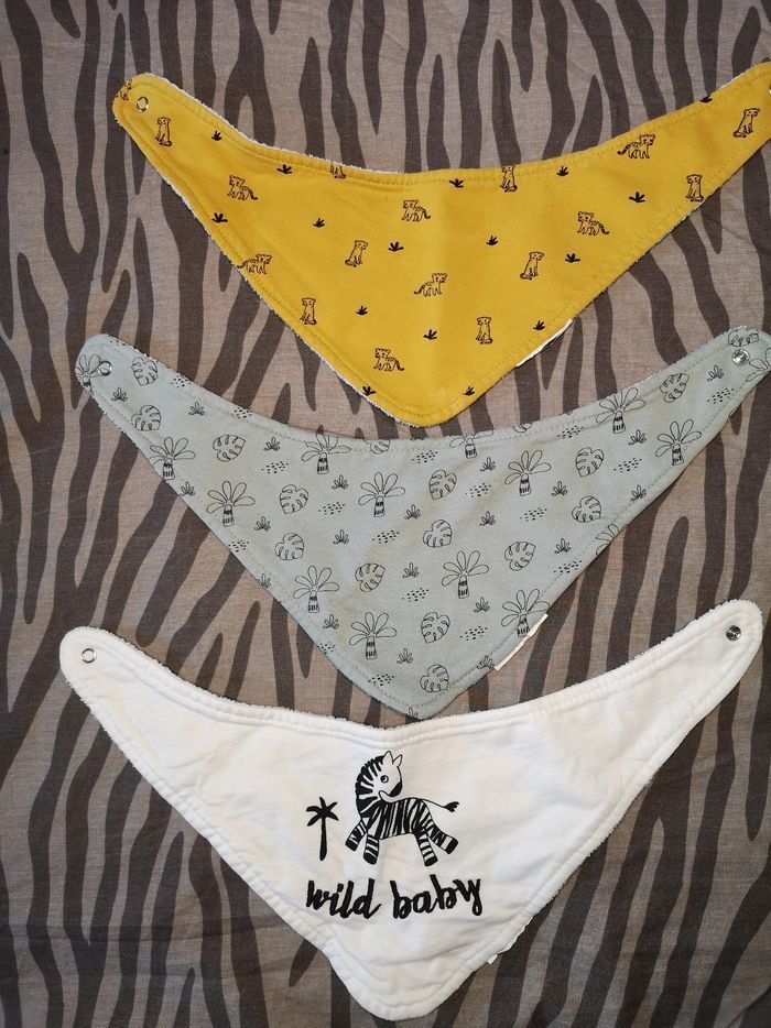 Lot de 3 bavoirs, les étiquettes ont été découpées mais mon fils n'a pas eu l'occasion de les utiliser 😊