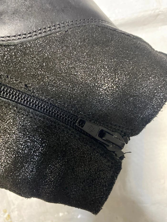 Bottines habillées cuir . Très bon état . Pailletée, avec fermeture zip . Et une Fermeture décorative . Talons, auteur, 300
