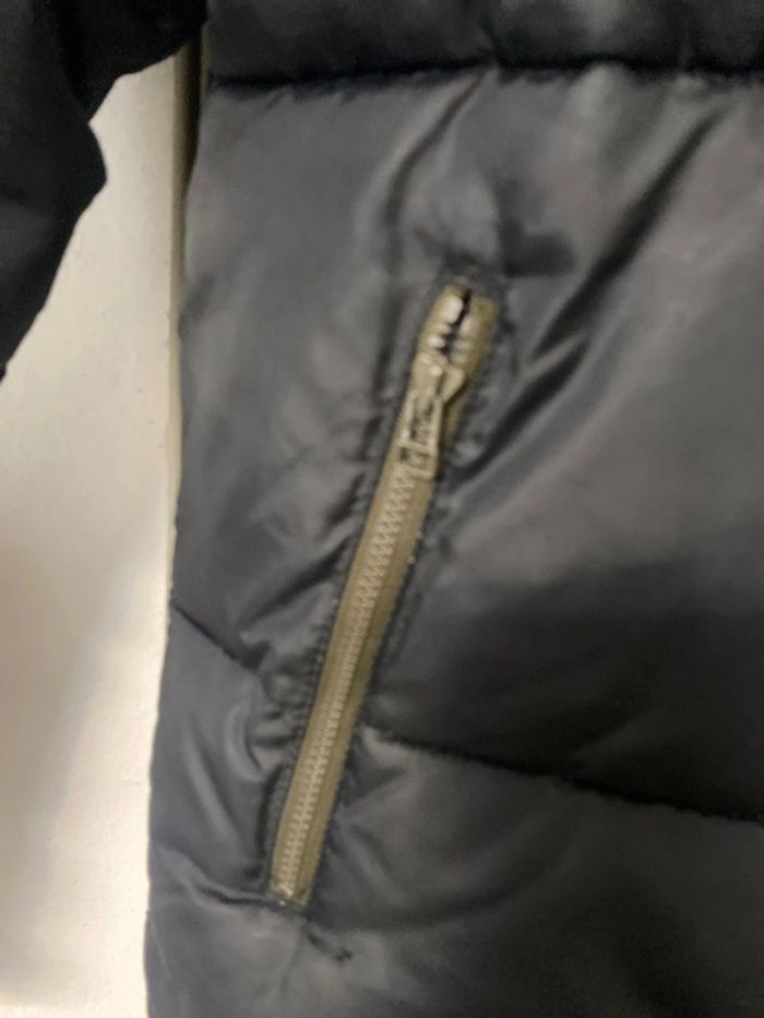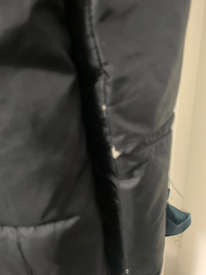 Manteau doudoune, avec capuche . taille XS ou 14/ 16 ans ans. Fermeture zip. Une légère imperfection sur la manche, un petit accroc . Deux poches avec fermeture zip.