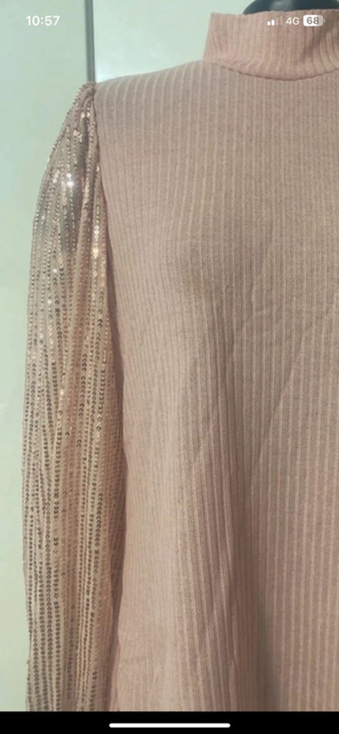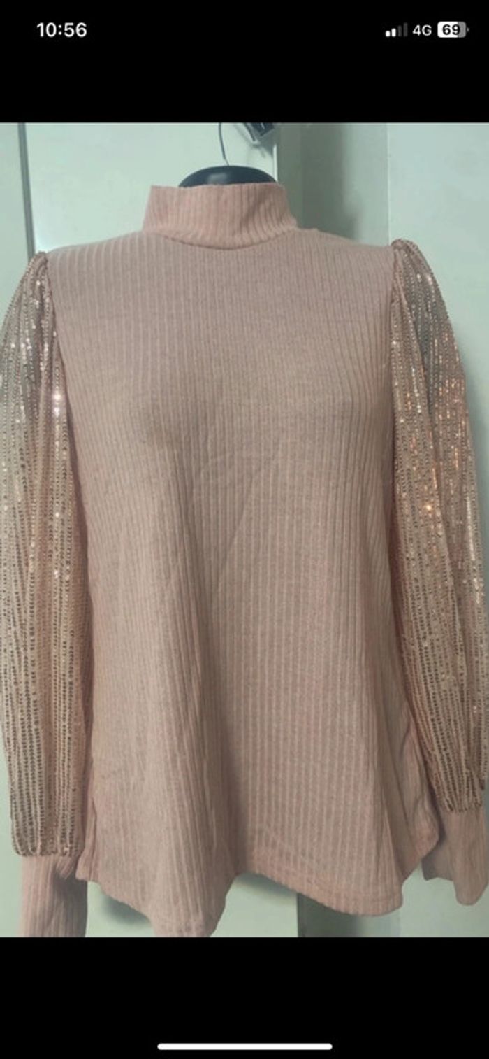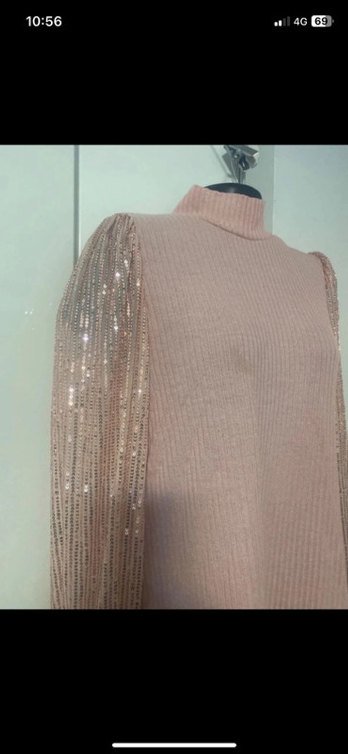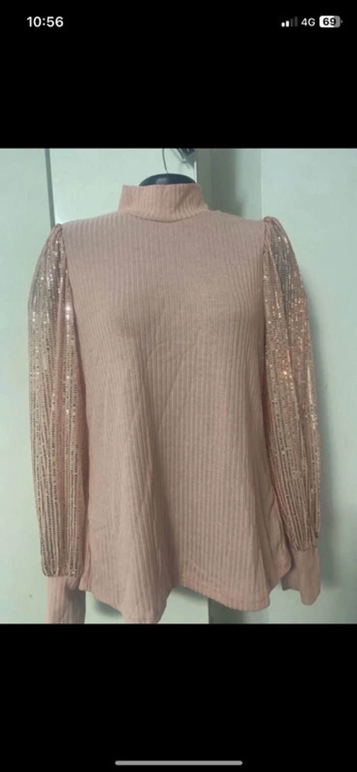 Pull habillé État Neuf Col montant. Manches longues avec paillettes . Longueur 62 cm .aisselle à aisselles, 50 cm.D’autres articles disponibles sur mon dressing n’hésitez pas à me demander. 😊