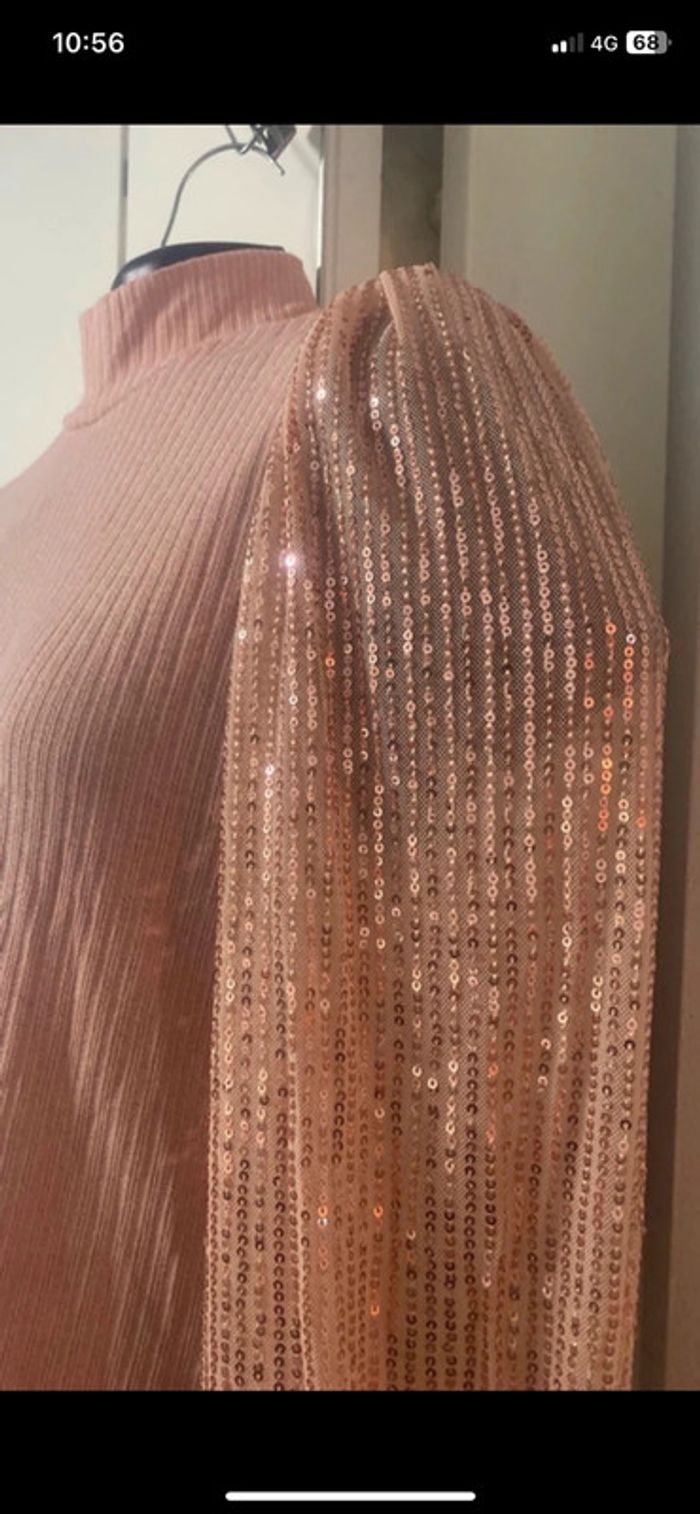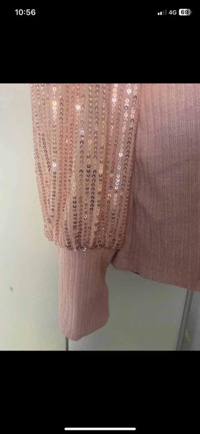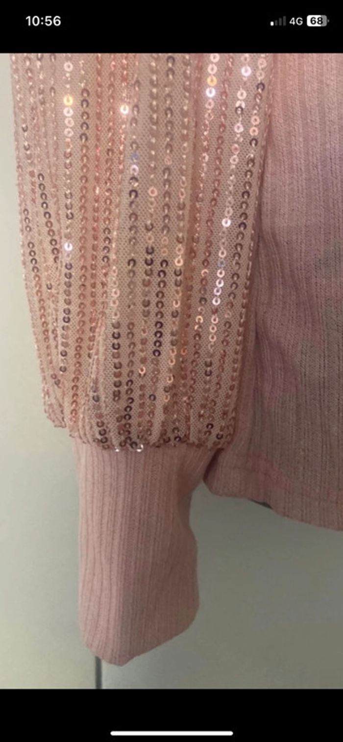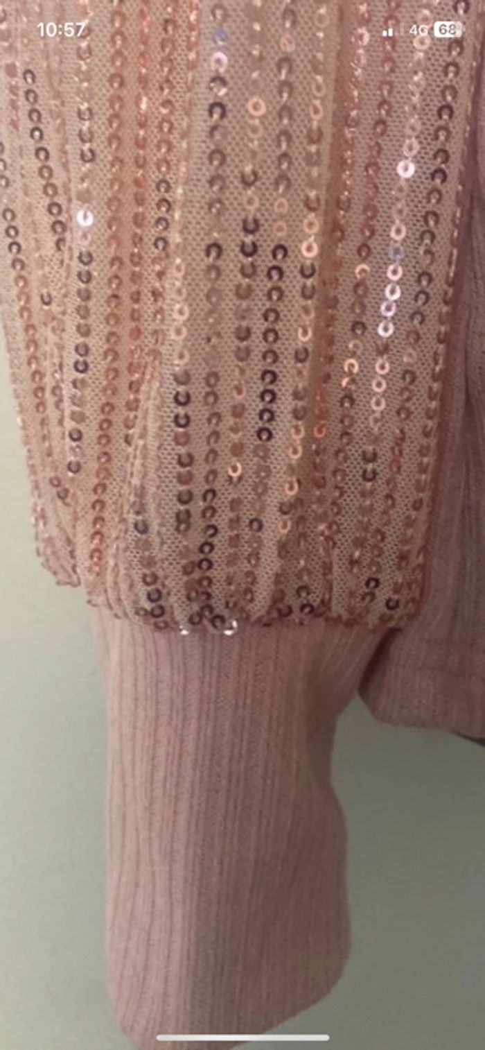 Pull habillé État Neuf Col montant. Manches longues avec paillettes . Longueur 62 cm .aisselle à aisselles, 50 cm.D’autres articles disponibles sur mon dressing n’hésitez pas à me demander. 😊