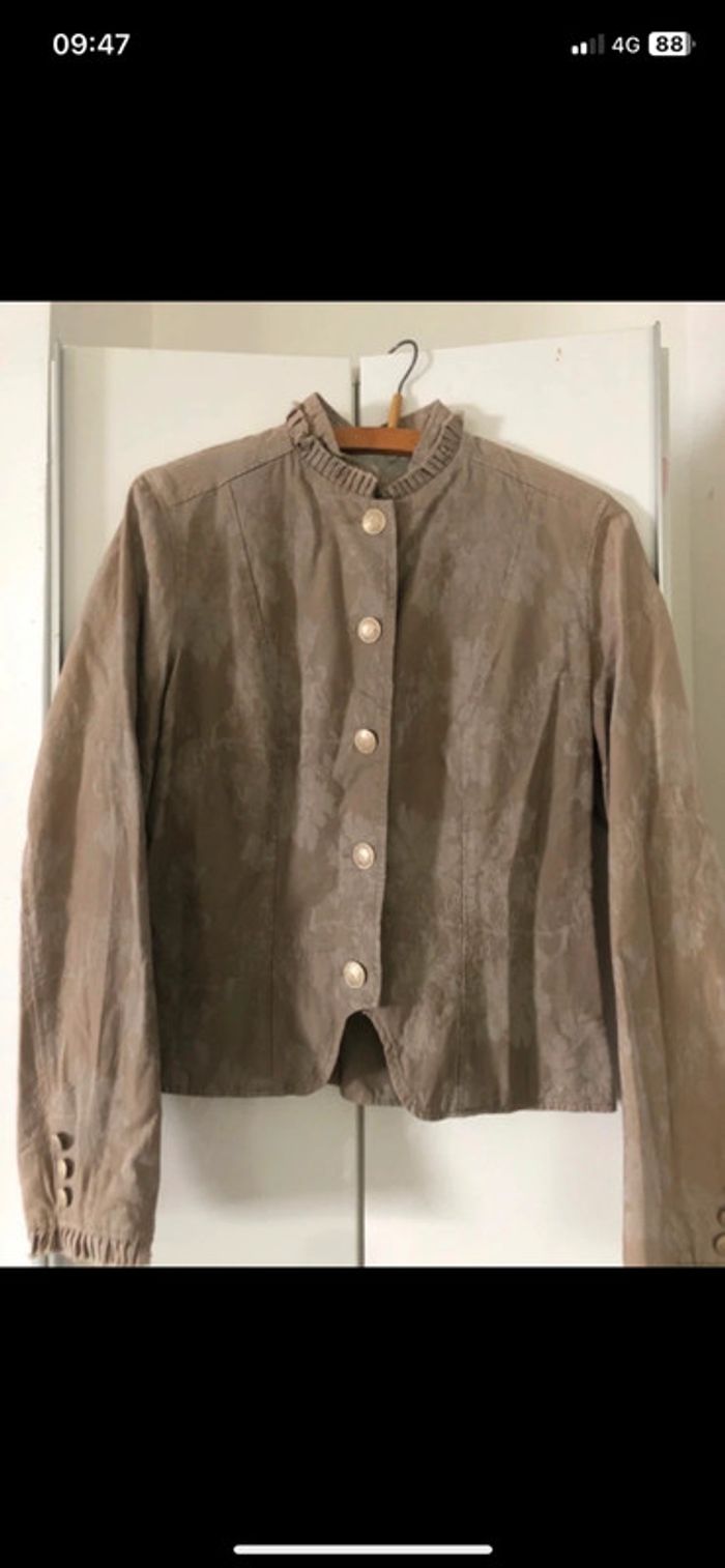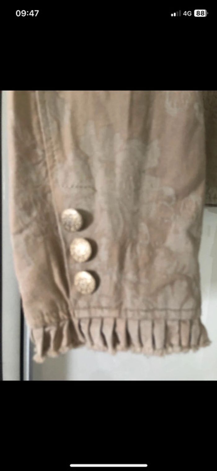 Veste en Parfait état idéal occasion de fetes . Boutons dorées Longueur 57 cm .style tapissier / baroque . tissu et daim effet relief .
