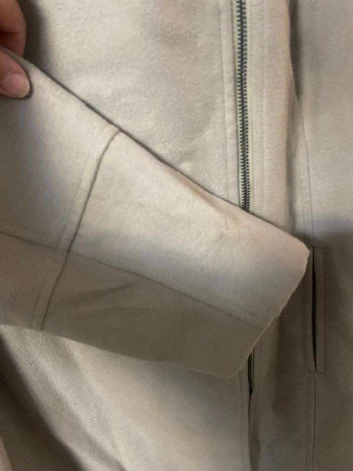 En parfait état. Deux poches. Fermeture zip. Avec deux boutons à pression.. longueur 83 cm. Avec passant, possibilité d’ajouter hussain sur ton fente à l’arrière.