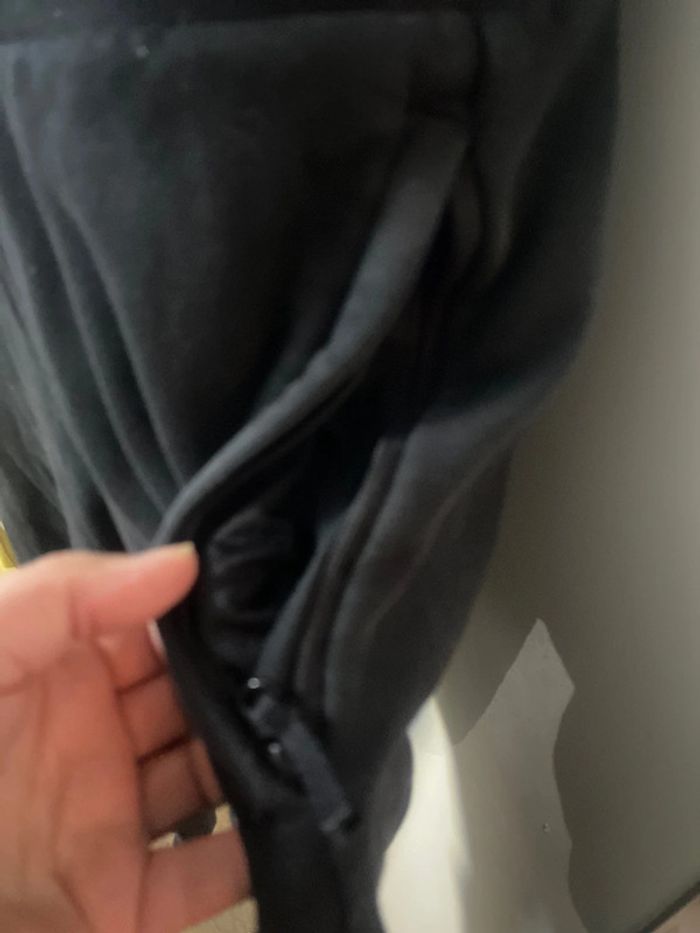 Très bon état. Jogging à jambes larges. Taille ajustable élastique. De poche avec fermeture éclair. Large. Longueur 94 cm largeur jambes à plat 27 cm .