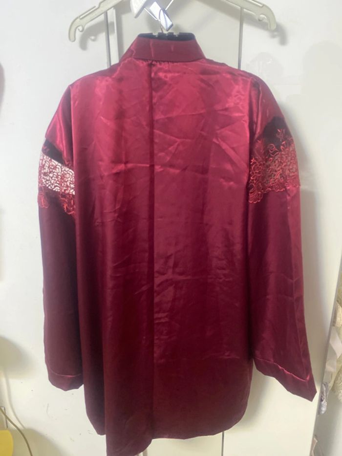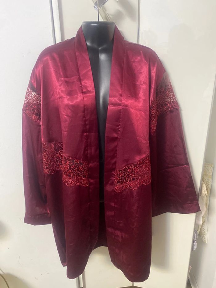 Très bon état . Comme neuf . Peignoir Satiné. Avec broderie. Possibilité d’ajouter une ceinture. Longueur 85 cm .