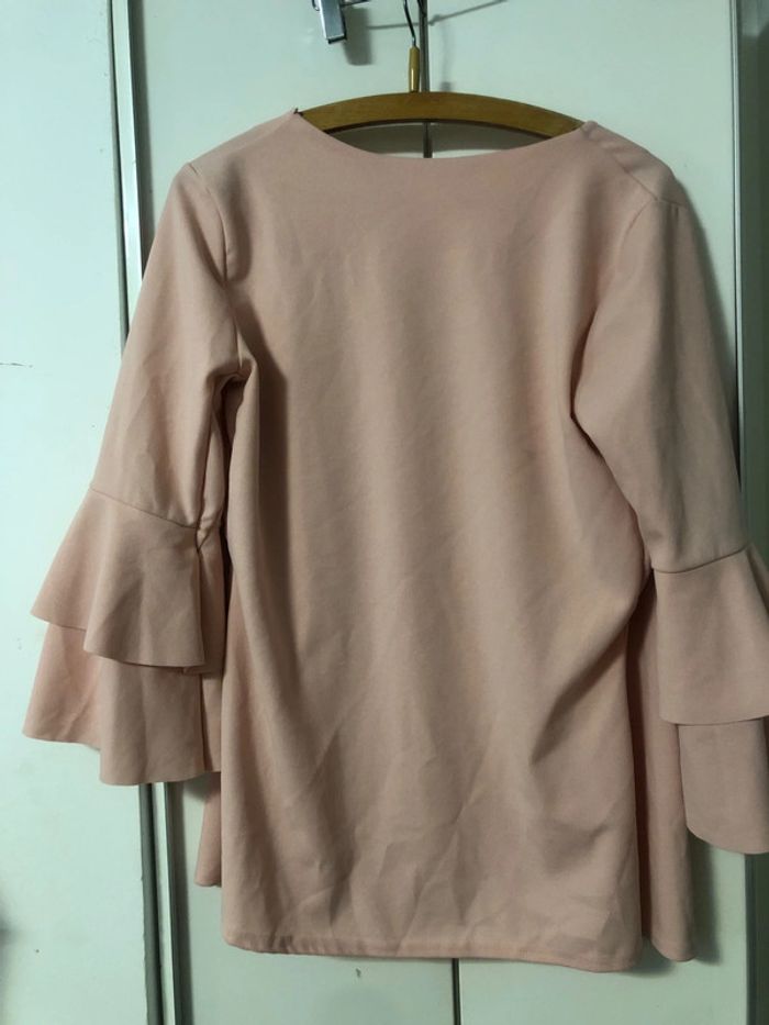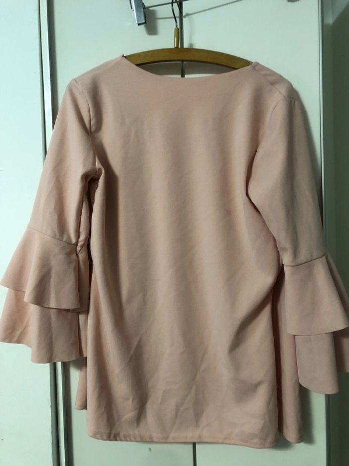 Très bon état . Très Peu portée . Longueur 67,5 cm . Manches 3/4 froufrou . Matière fluide