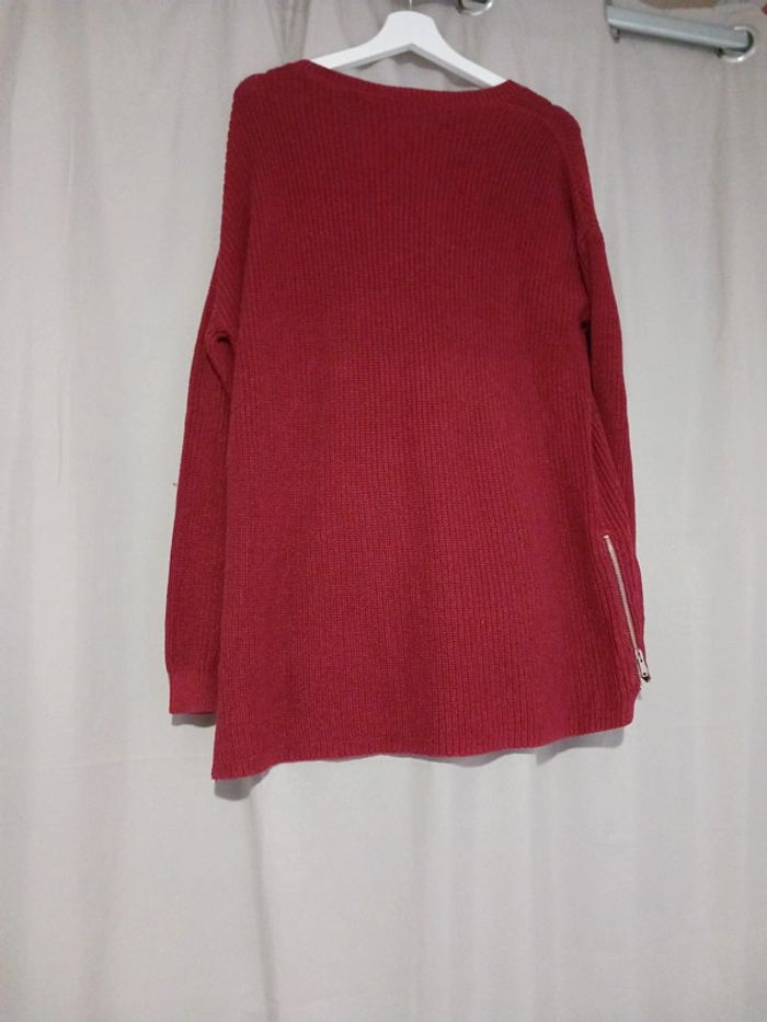 Pull rouge bordeaux long taille m h&m - photo numéro 3