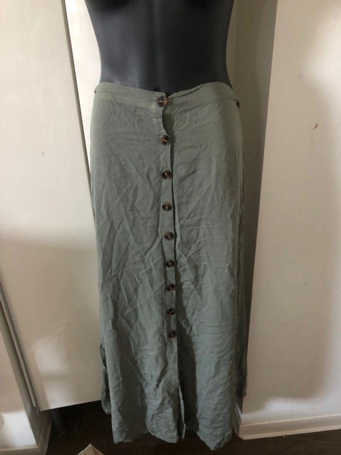 Légère . Taille élastique ajustable . Boutonnage .longueur 95 cm