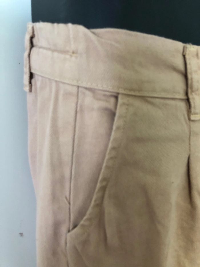 Taille ajustable élastique. Poches . Fausses poches arrière . Longueur 100 cm .