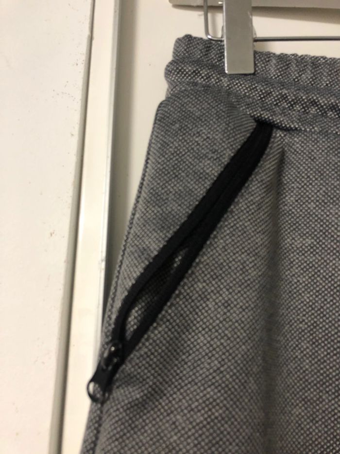 Taille élastique ajustable avec cordon . Poches avec fermeture zip . Longueur 50 cm