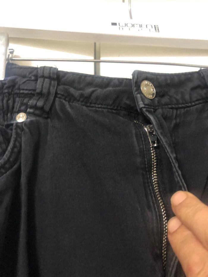 Très bon état. Taille haute . Taille élastique ajustable .Bas plié . ongueur 93 cm plié .poches avant et arrière .