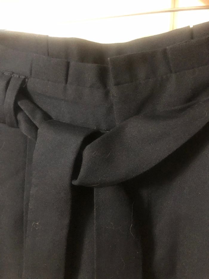 Très bon état . Taille haute . Longueur 103 cm . Poches arrière encore cousus fermées .ceinture intégré.