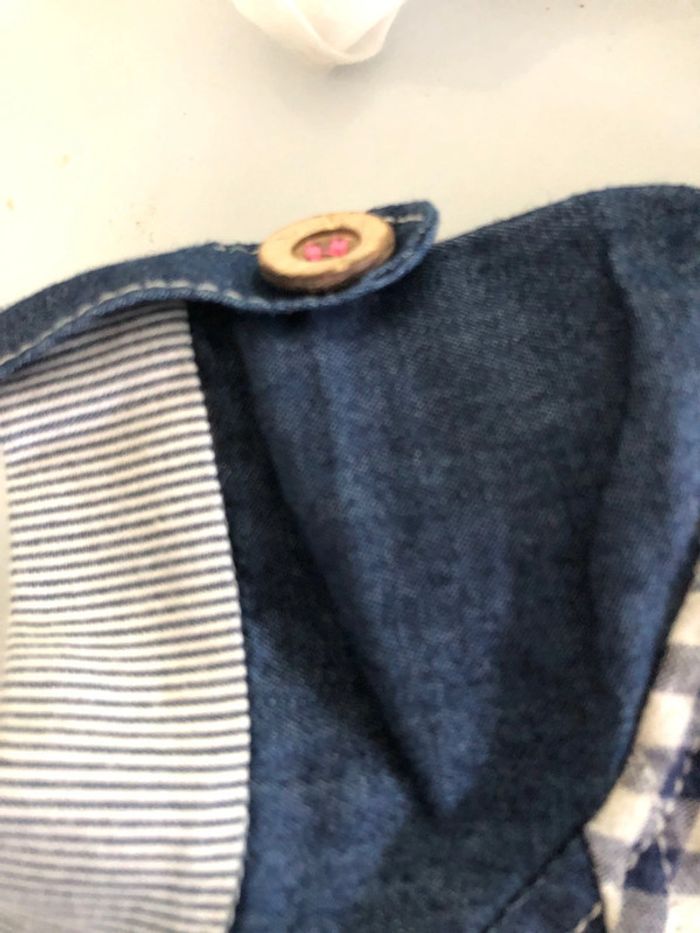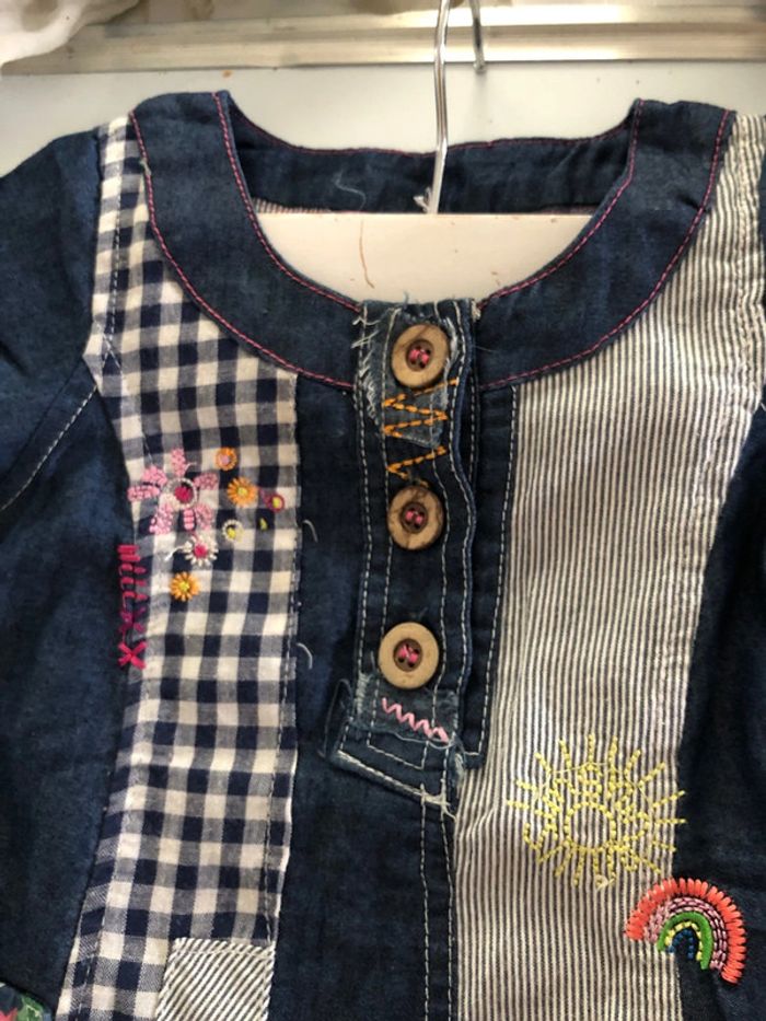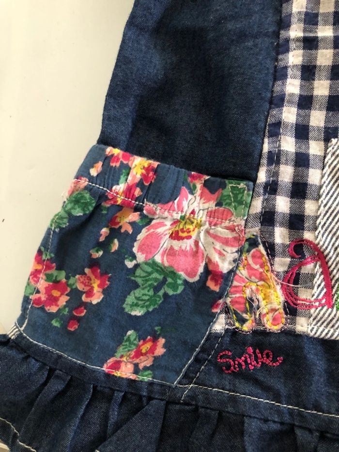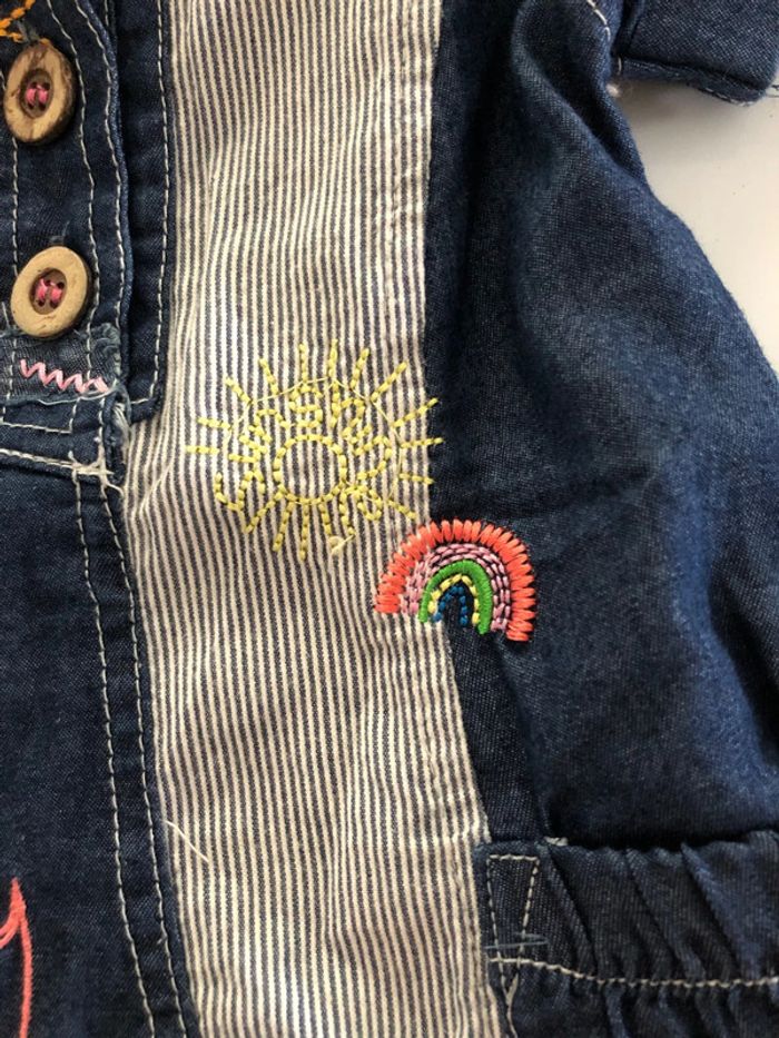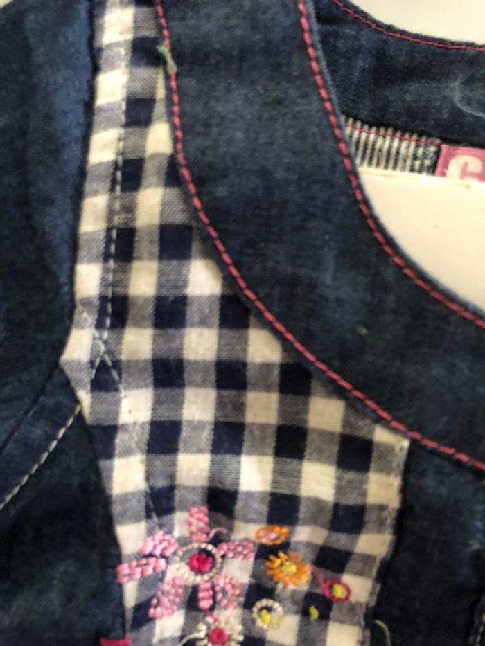 Très jolie Robe avec Broderie . Boutons froufrou poches …Imitation jean .