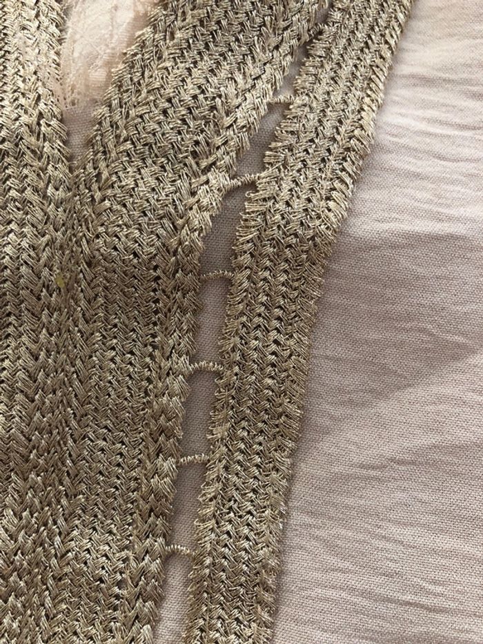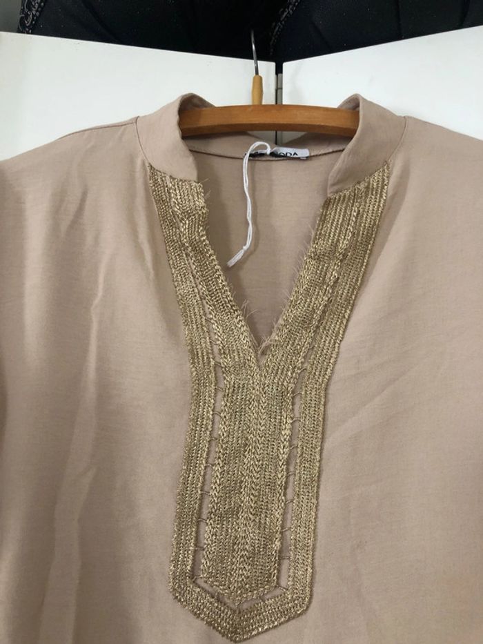 Très bon état . Col V broderie dorée. Longueur 80 cm . Taille 44/46. Fluide . Fabriqué
