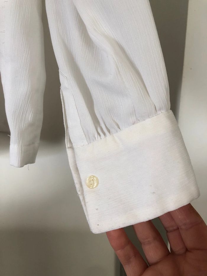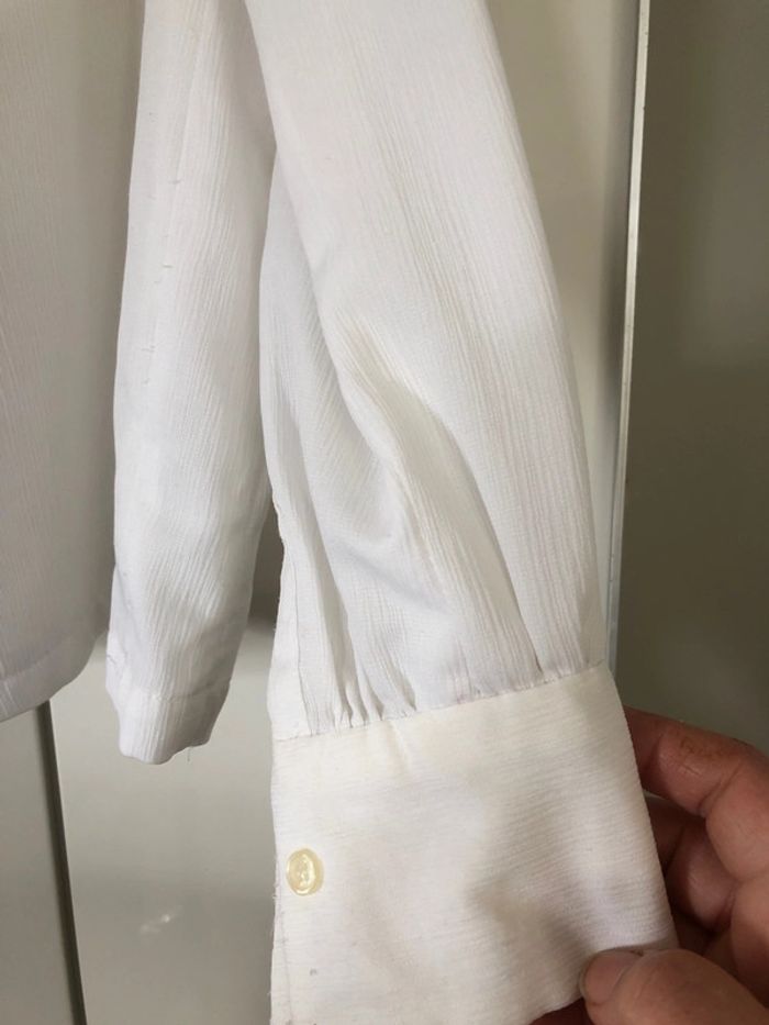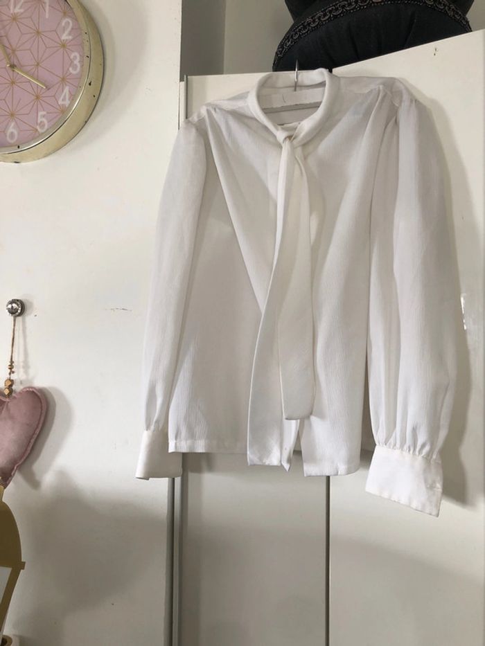 Très bon état . Manches longues . Bonne qualité de tissu qui ne se froisse pas . Cravate inclus .