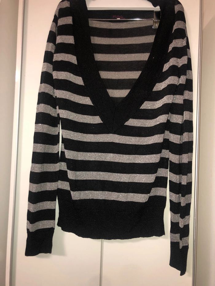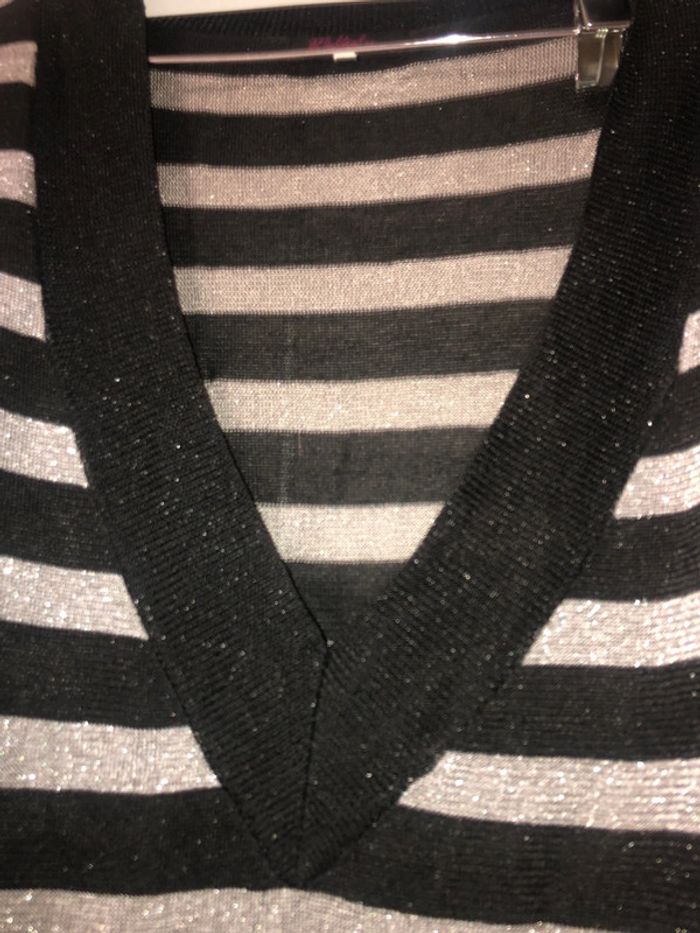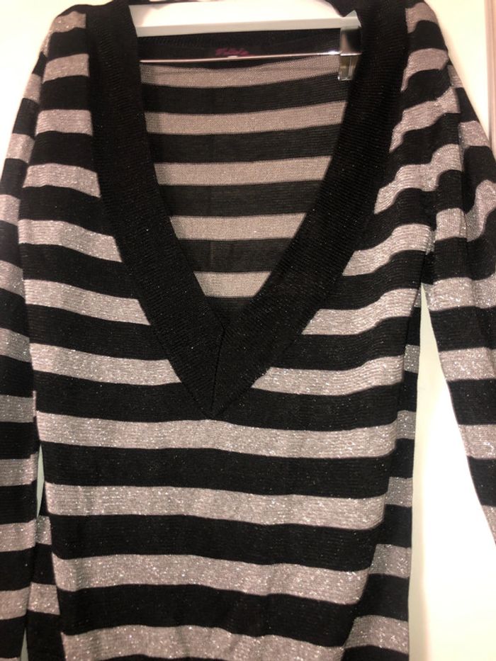 Pull en très bon état . Peu portée . Col V plongeant . Paillettes argentées.