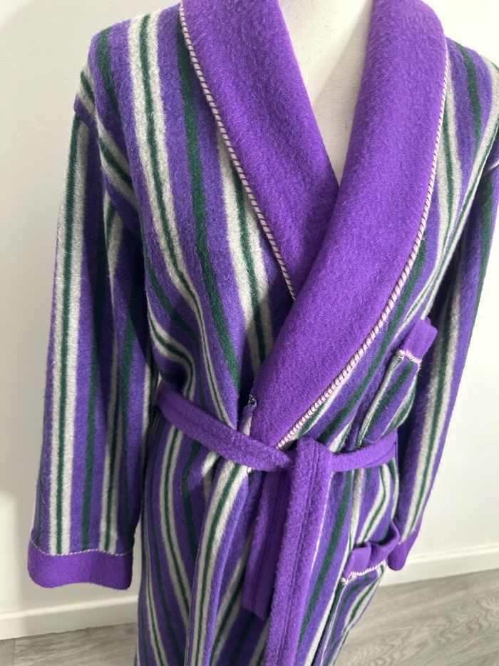 Peignoir long polaire violet vert foncé et gris Vintage TU