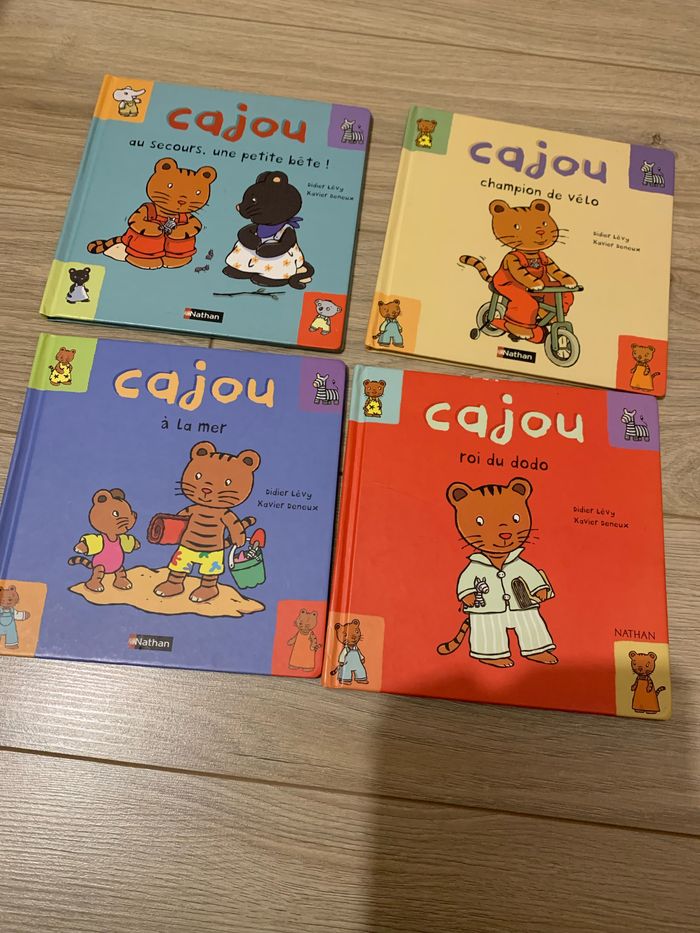 Lot de 4 livres enfant Nathan Les histoires de cajou le petit tigre - cajou au secours, une petite bête -cajou à la mer -cajou champion de vélo -cajou roi du dodo Pages plastifiées En très bon état Maison sans animaux ni tabac #editionnathan #livreenfant #cajou #cajoulepetittigre #lotlivresenfant #dinan #saintmalo #combourg #liliesouris #2024 #noel #idéecadeau