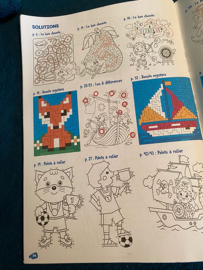 Cahier de jeux et coloriage 74 pages Neuf, seulement 2 pages commencées (2 dernières photos ) #cahiercoloriage