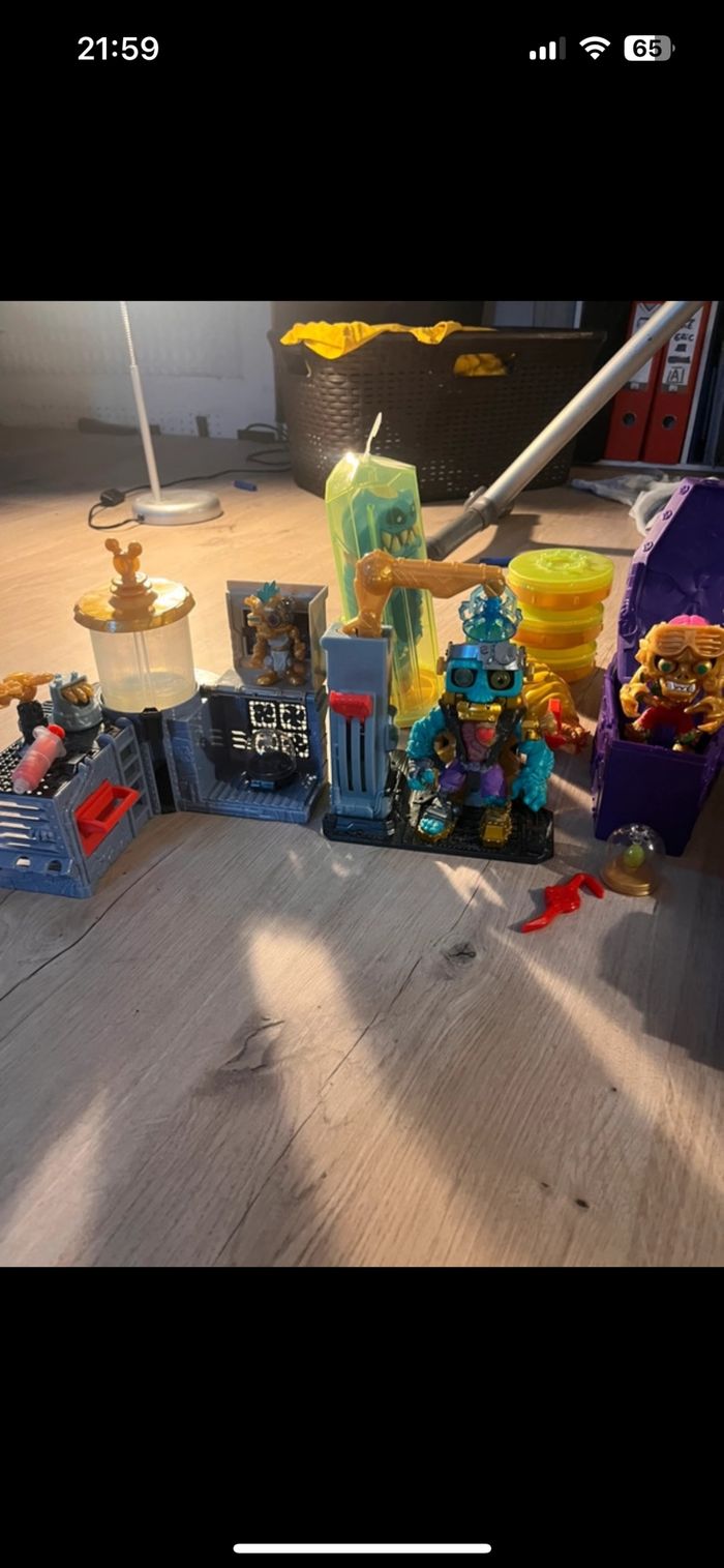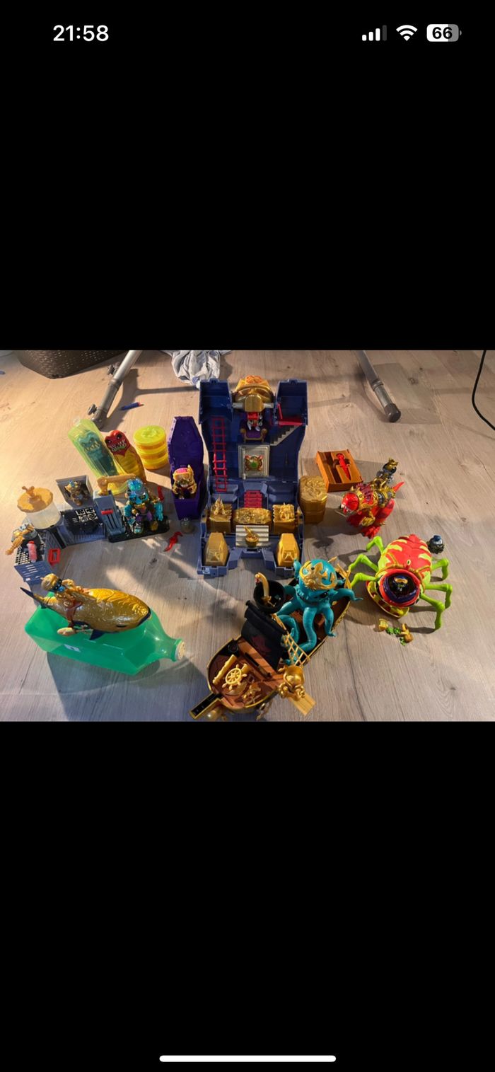 Gros lot trésor X : Tombeau , bateau pirate , requin , laboratoire , trésorX aliens , T-Rex ,nombreux personnage de la première génération . Quasi complet manque très peu de pièces . Notice fournie Prix négociable dans la limite du raisonnable . Envoi rapide
