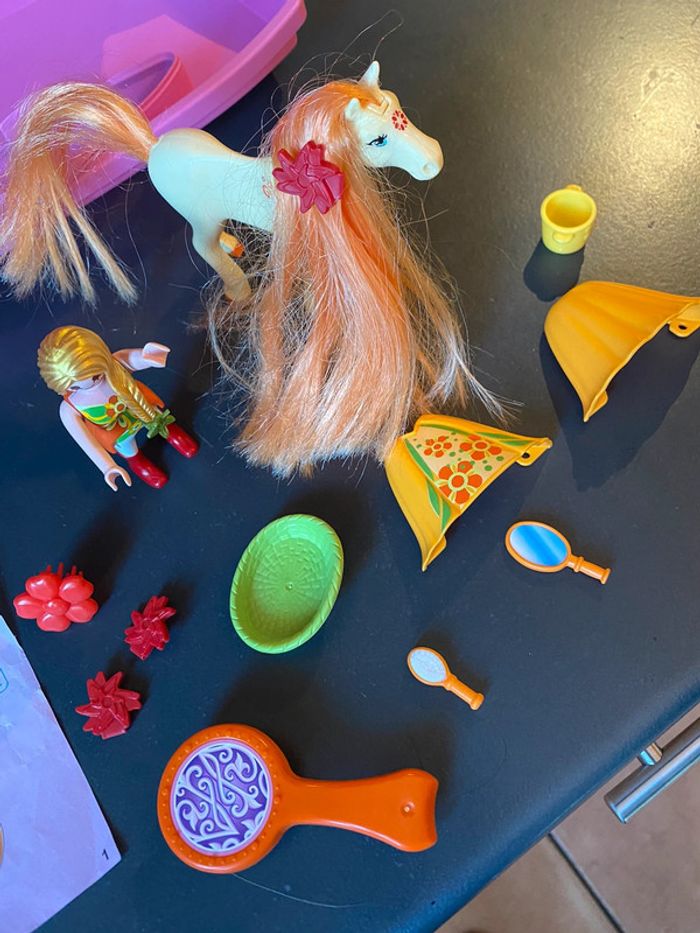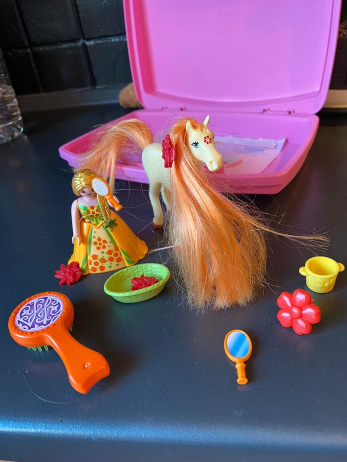Valisette rose playmobil contenant princesse et son cheval aux cheveux longs et soyeux Complet et Tb état Notice abîmée #valisetteplaymobil #playmobilfille #chevalplaymobil