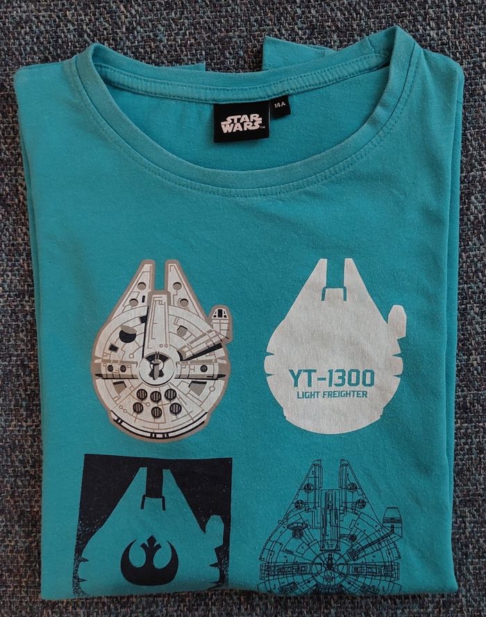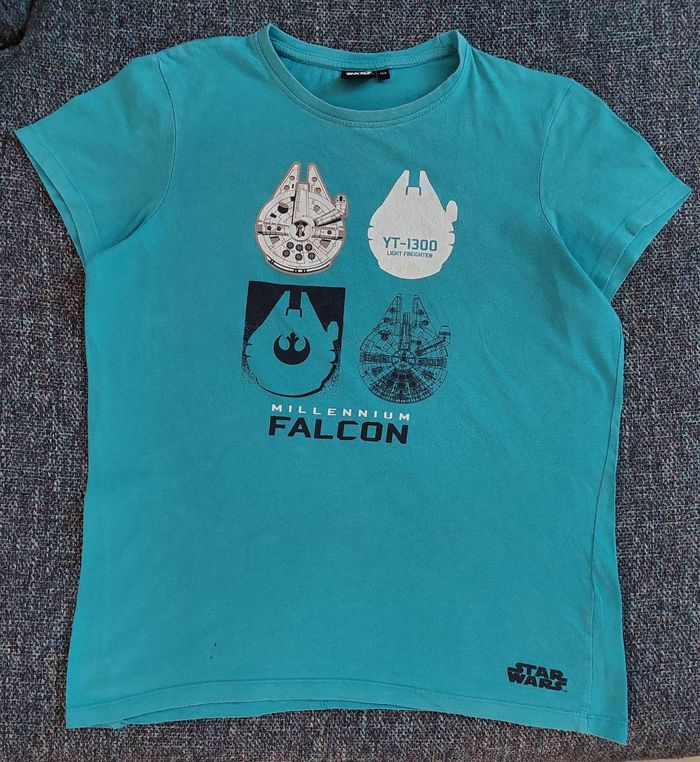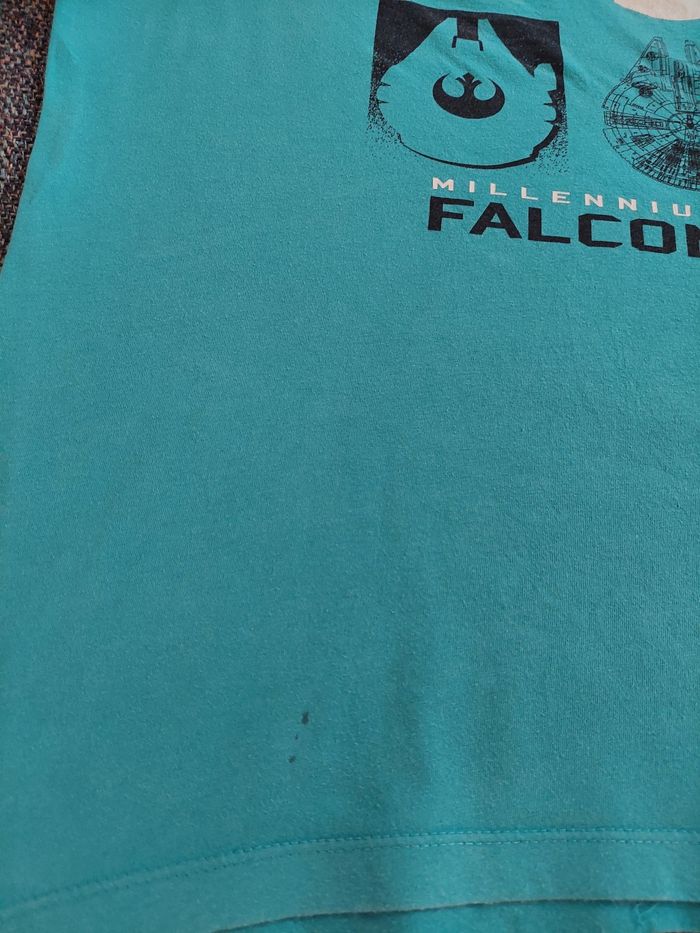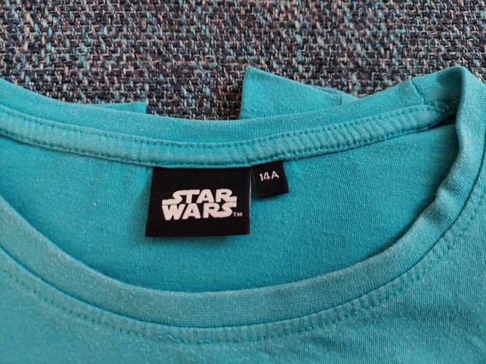 T-shirt Star Wars 14 ans turquoise. 2 petites tâches foncés en bas droit du t-shirt (voir photo).