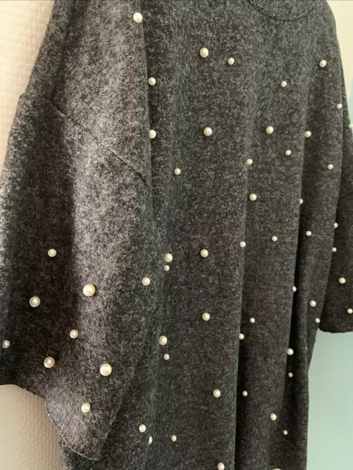 Haut Pull Gris Perlé Manches 3/4 Zara TS - photo numéro 3